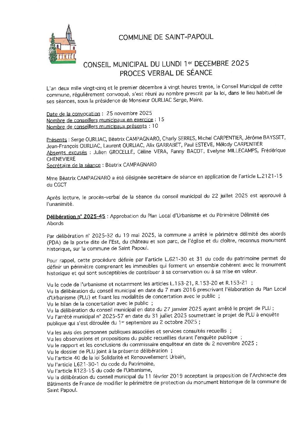 Le souhait de l’équipe municipale est de permettre le développement mesuré et raisonné du village, en s’appuyant sur un document d’urbanisme que nous avons révisé, afin de conserver à Saint Papoul son identité rurale et sa dimension humaine où prévalent le calme et la convivialité.